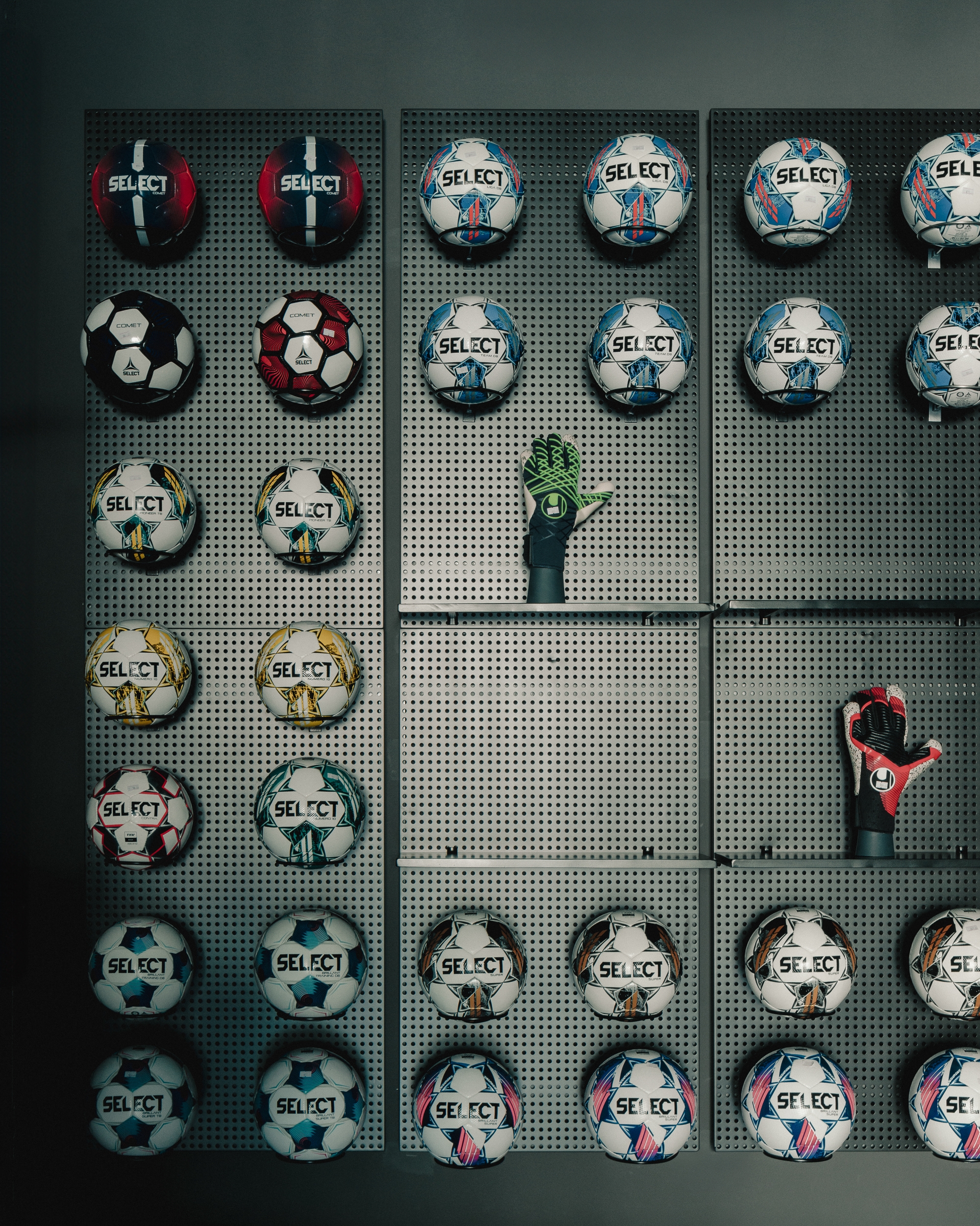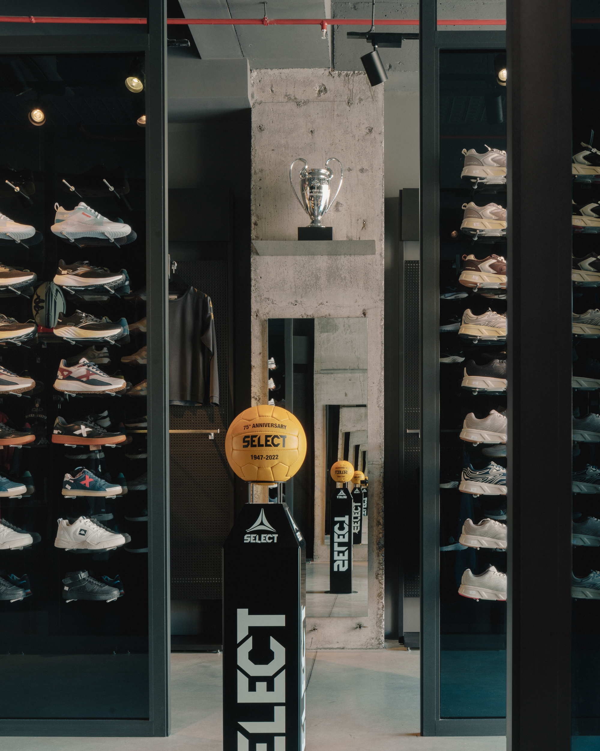 The zone for balls and bowls features additional mirrored surfaces. These mirrors improve the visual perception of the space and make it more comfortable for customers to try out products.