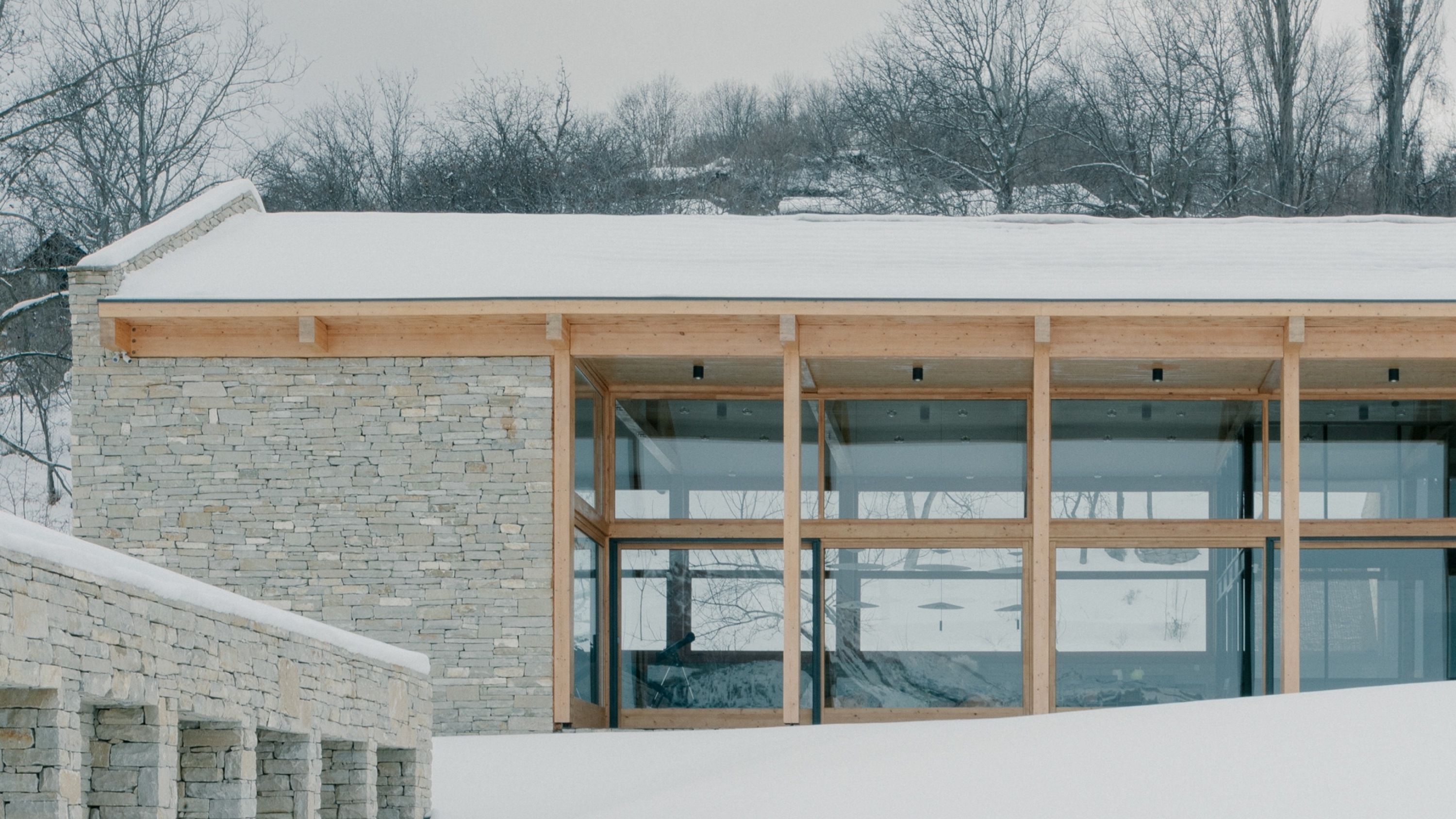 ერთსართულიანი სტრუქტურა შედგება ქვისა და ხის კონსტრუქციებისგან, რაც ინტერიერში თბილი და ბუნებრივი გარემოს შექმნას უწყობს ხელს. ფასადზე განლაგებული ფართო მრგვალი ფანჯრები ინტერიერის ნაწილად გადაიქცევა, რაც საშუალებას აძლევს სახლს, კიდევ უფრო ორგანულად შეერწყას ბუნებასა და გარემოს.