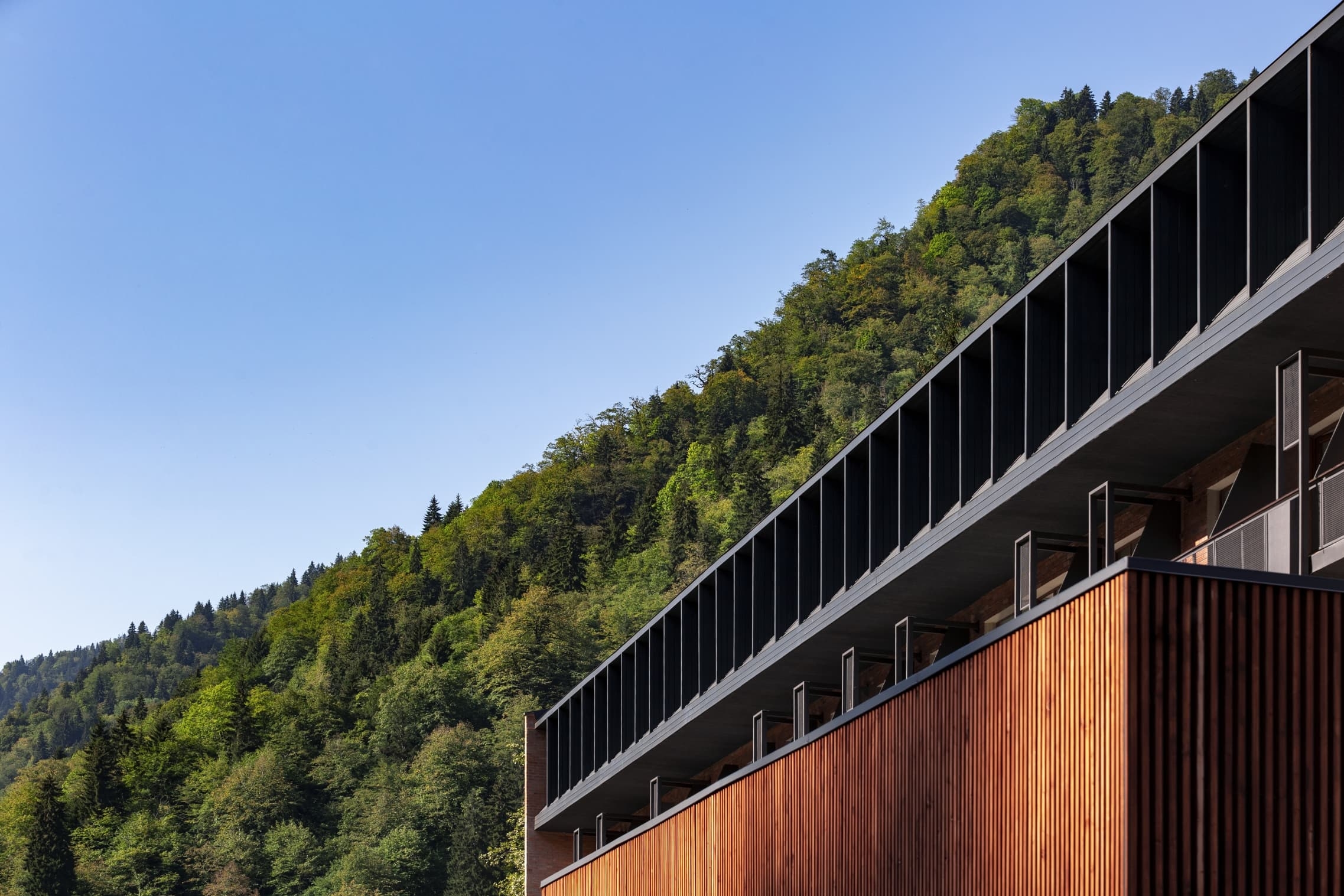 The project site is located in Sairme resort, at an altitude of 650 m above sea level. One full floor of hotel guestrooms was added to the volume of the existing hotel. Part of the construction is done with dark wood paneling, which visually separates it from the existing facade, although we think, at the same time it creates a logical end to the building. Within the framework of this project, through two one-story extensions, the restaurant space was expanded and completely renovated. Next to the restaurant, a large terrace and an outdoor swimming pool were arranged.